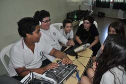 Los estudiantes del Luigi pudieron experimentar la realización de un programa de radio, que se transmitía en vivo a traves de la web. Con una sala equipada con consola de audio, micrófonos y computadoras, los chicos desarrollaron el programa, cuyo formato fue el magazine. |